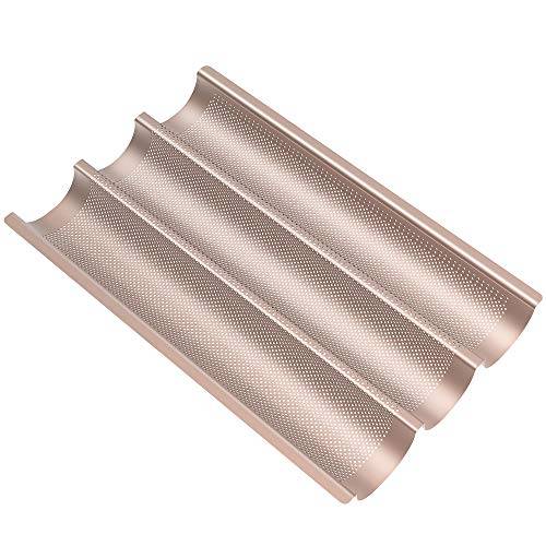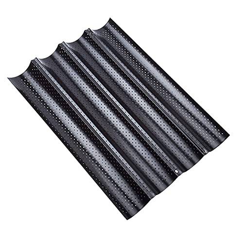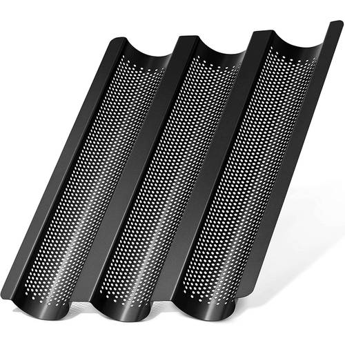 Die meisten Baguette-Backbleche aus Edelstahl und Co. verfügen für eine gleichmäßige Bräunung über eine luftdurchlässige Perforierung, sodass die Baguettes während des Backens im Ofen gleichmäßig von heißer Luft berührt werden können. Hier geht es zu unserem Backblech-ausziehbar-Vergleich.