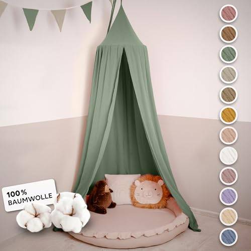 Wer das Himmelbett nicht über dem Bett anbringen möchte, kann dieses auch in einer Ecke des Kinderzimmers aufhängen. Dort könnte dann beispielsweise eine gemütliche Kuschelecke eingerichtet werden.
