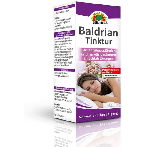 Baldrian ist ein taditionelles Naturheilmittel und wird oft pur, wie hier bei den Abtei-Baldrian-Tropfen „Nachtruhe“ verwendet, wird aber auch in Kombination mit anderen pflanzlichen Wirkstoffen angeboten.