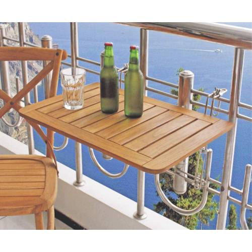 Balkonhängetische aus Holz oder wetterfestem Aluminium zählen zu den robusteren Modellen und können auch im Freien genutzt werden. Wir empfehlen Ihnen, diese regelmäßig von Schmutz zu befreien und ein- bis zweimal im Jahr eine Pflege aufzubringen.