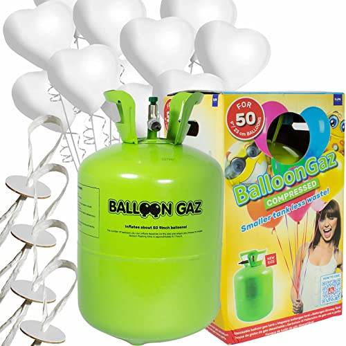 Für 50 Luftballons aus Latex mit einem Durchmesser von 23 cm brauchen Sie circa 13,4 l Helium. Auf der Verpackung der Ballongase steht aber immer drauf, wie viele Ballons befüllt werden können.