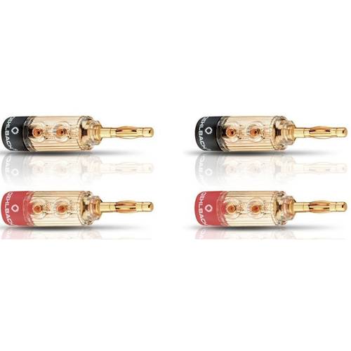 Wie wir feststellen, unterscheiden sich diese beiden 4er-Sets der Oehlbach-Performance-Bananenstecker in erster Linie im Querschnitt (4 und 10 mm²), für den sie geeignet sind.