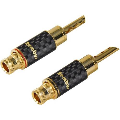- 4 mm Hohl-Bananenstecker: Der signalführende Stift ist innen hohl. Hohlbananas sind daher nicht besonders robust und können bei zu starker Zuglast des Kabels leicht brechen. Nutzen Sie Hohlbananas nur für den dauerhaften Anschluss Ihrer Boxen an einem festen Aufstellungsort. Achten Sie auch auf ausreichend dimensionierte Boxenkabel ohne Spannung.