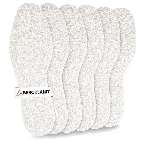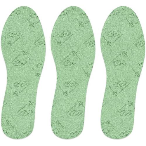 Hier werden neben der Just-Fine-Barfußsohle auch eine Geruchsstoppersohle und eine Bambussohle von Just Fine gezeigt, die ebenfalls Feuchtigkeit aufnehmen.