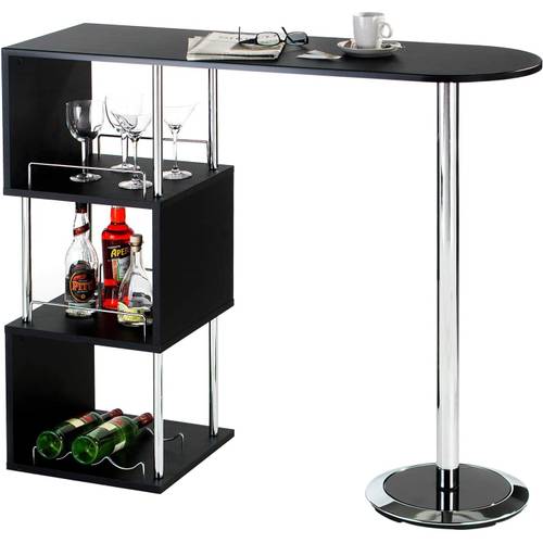 Die Auswahl an Bartischen ist groß. So können Sie Bartische mit Massivholzplatten wählen, es gibt aber auch solche aus Metall und Kunststoff. Das Gestell ist meist aus Holz oder Metall gefertigt. Möchten Sie einen Bartisch mit Stauraum, wählen Sie am besten einen, der Holzregale integriert hat.