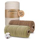 Das Premium-Makramee-Garn von Goldmariechen kommt im 3er-Set in den Farben Naturell, Taupe und Salbei. Preislich liegt es im oberen Segment unseres Vergleichs. Dafür punktet es mit einem Material aus 100 % Baumwolle und einer 4-strängigen Verarbeitung.
