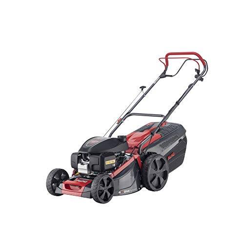 Die genauen Kennzahlen und auch den mit der Leistung korrespondierenden Hubraum entnehmen Sie auf einen Blick unserem Benzin-Rasenmäher-mit-46-cm-Schnittbreite-Vergleich.