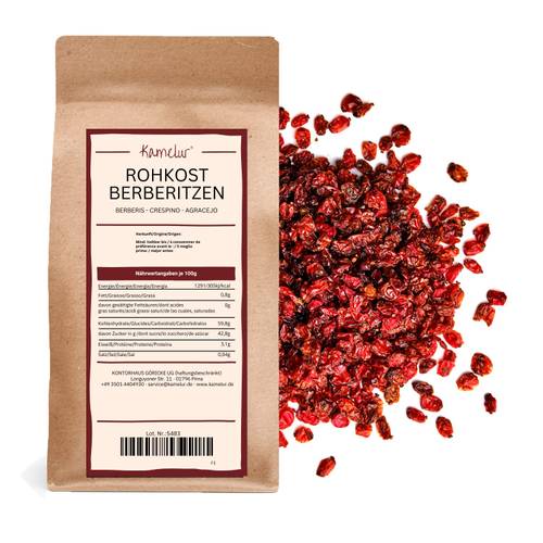 Auch in Gebäck, Kuchen und sogar in Marmeladen sowie Tees sorgt die säuerliche Note der Berberitzen für ein hervorragendes und außergewöhnliches Geschmackserlebnis. Sie können zum Beispiel eine Kanne frisch aufgegossenen schwarzen Tee mit einem Teelöffel getrockneter Berberitzen verfeinern.