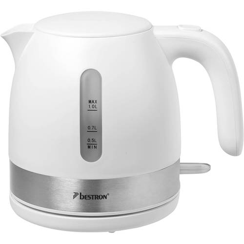 Die Marke Bestron ist vor allem für ihre Wasserkocher im Vintage-Design bekannt. Diese haben eine Teekannenform und sind aufgrund ihrer Ästhetik besonders beliebt. Insbesondere bei Modellen aus Kunststoff haben Sie eine sehr große Farbauswahl: Diese Bestron-Wasserkocher sind in Rosa, Mintgrün, Blau und in vielen weiteren Farben erhältlich. Andere Modelle wie den Bestron-Wasserkocher AWK 1000 CO finden Sie mit metallischem Finish und auch Bestron-Wasserkocher in Kupfer verpassen Ihrer Küche einen edlen Touch.