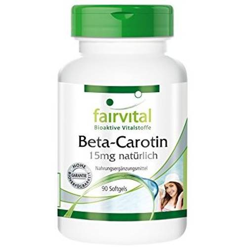 Platz 5 | fairvital Beta-Carotin natürlich | ca. 15 € | 15 mg | Sojaöl | ![]() ![]() |