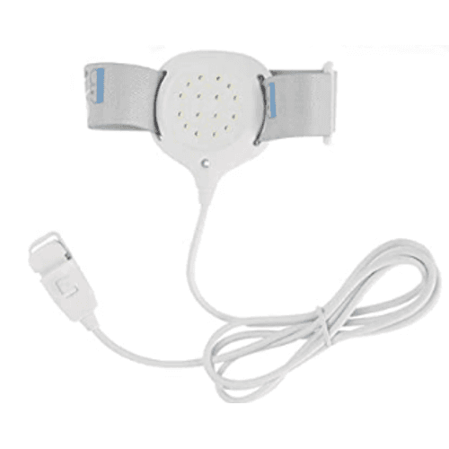 Der Sensor ist entweder mit einem Kabel oder per Funk mit einem Signalgeber verbunden. Der Signalgeber wird je nach Modell auf dem Nachttisch positioniert, mit einem Clip an den Schlafanzug geklemmt oder mit einer Armbinde am Arm befestigt.