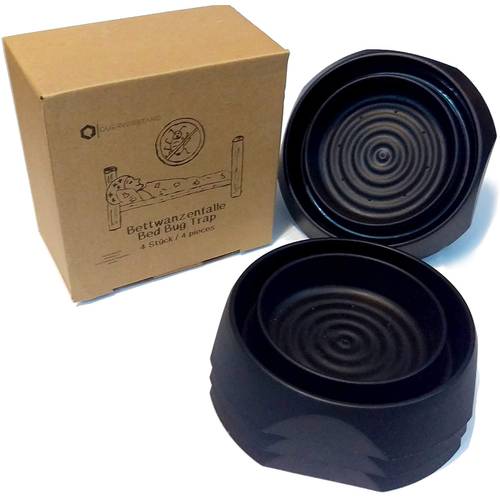 Möchten Sie lieber eine ungiftige Variante nutzen, empfehlen wir Ihnen Barrierefallen. Dies sind ungiftige Bettwanzenfallen. Da Wanzen weder springen noch fliegen können, können sie sich Ihrer Mahlzeit (also den Menschen im Bett) nur kriechend nähern. Barrierefallen werden unter die Beine des Bettgestells gestellt. Denn der Bettpfosten bietet eine optimale Möglichkeit für die Tiere, ins Bett zu gelangen. Einmal in die Barriere gekrochen, kommen sie nicht mehr hinaus. Da die Innenseite entweder ebenfalls klebt oder die Ränder glatt sind und ein Herauskriechen verhindern.