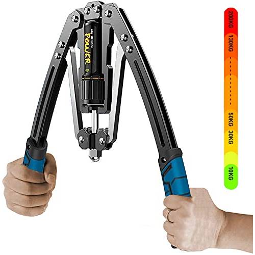 Auch eine verstellbare Biegehantel kann sinnvoll sein. Aber wie lässt sich eine Biegehantel verstellen? Einige Modelle sind so konstruiert, dass die Position der Hände darüber bestimmt, wie hoch der Widerstand ist. Beim Power-Twister des Herstellers Miiga kann der Widerstand stufenlos über das Verstellrad variiert werden. Dabei können Sie die Biegehantel bis zu 100 kg Widerstand einstellen.
