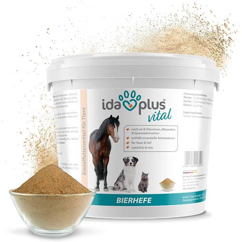 Auch B-Vitamine sind in Bierhefe in hohen Mengen enthalten und unterstützen sowohl Fell als auch Hufe und fördern so den schnellen Fellwechsel. Die in Bierhefe enthaltenen Hopfenbestandteile haben eine beruhigende, antibakterielle und antioxidative Wirkung. Auch für Pferde mit Hufrehe ist Bierhefe bestens geeignet, denn der hohe Gehalt an wasserlöslichen B-Vitaminen in dem Ergänzungsfuttermittel wirkt unterstützend für das Pferd – besonders nach einem Hufrehe-Schub, wenn die Hufsubstanz wieder aufgebaut werden muss.
