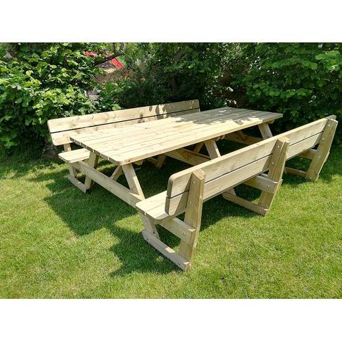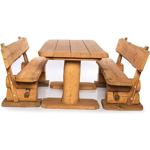 Rustikale Bierzeltgarnituren mit Lehne bestehen komplett aus Holz, also auch die Beine der Garnitur. Sie sind schwerer als Modelle mit einem Gestell aus Metall. Das Erscheinungsbild der rustikalen Bierzeltgarnitur mit Lehne ist jedoch einheitlich und gilt als hochwertig.