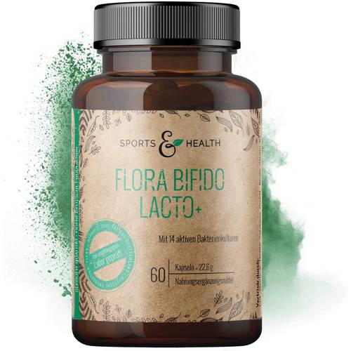 Platz 3 | Sports & Health Flora Bifido Lacto+ | ca. 17 € | 60 Tage | 14 aktive Bakterienstämme | ![]() ![]() | |