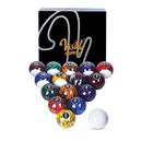 Pool-Billard-Kugeln, die weltweit am weitesten verbreitete Variante, haben einen Durchmesser von exakt 57,2 Millimetern. Es gibt aber auch kleinere Billardkugeln mit 48 mm oder größere Billardkugeln mit 54 mm Durchmesser. Ein Standard-Set besteht aus 16 Kugeln: einer weißen Spielkugel und 15 nummerierten Objektkugeln. Diese sind farbig markiert – halb oder voll eingefärbt – und nummeriert von 1 bis 15. Für ihre auffälligen Billardkugel-Farben und hohe Glanzwirkung sind Pool-Billard-Kugeln bekannt, was sie besonders bei Hobbyspielern beliebt macht.