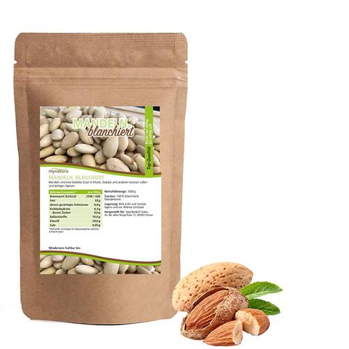 Sind Bio-Mandeln blanchiert, wurde die Haut, die den Bio-Mandelkern umgibt, entfernt. Diese Haut ist braun und hat einen leicht bitteren Geschmack. Der Mandelkern ohne Haut ist hell und cremefarben. Für Süßspeisen werden besonders häufig blanchierte Mandeln, meist gemahlen, verarbeitet. Aber auch zur Herstellung gebrannter Mandeln werden oft blanchierte Mandeln verwendet, da die Süßspeise so keinen bitteren Beigeschmack durch die Mandelhaut bekommt.
