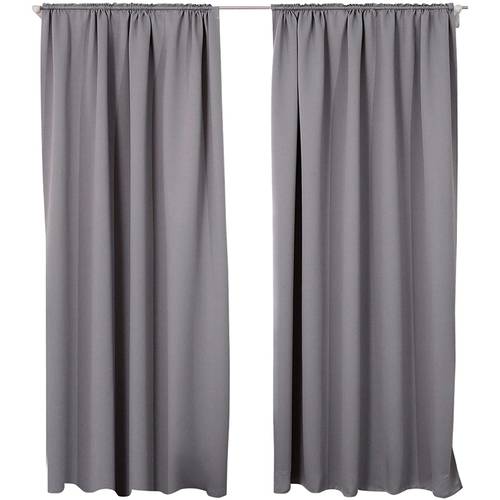 Der blickdichte Vorhang in Grau reicht bis zum Boden. Somit kommt nur sehr wenig Helligkeit in einen Raum.