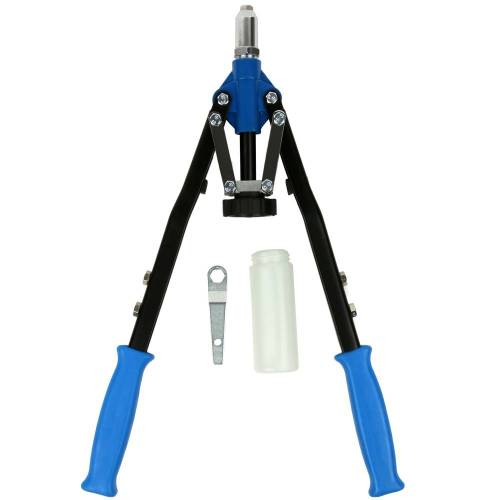 Die Hebelnietzange ähnelt einer Heckenschere und wird auch mit der gleichen Bewegung geführt. Die langen Hebel dieses Nietgerätes ermöglichen eine optimale Hebelwirkung beim Nieten, daher haben diese Blindnietzangen meist die beste Kraftübertragung. Bei besonders großen und harten Blindnieten übertrumpfen sie andere Blindnietzangen.