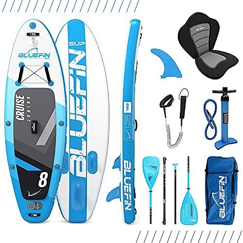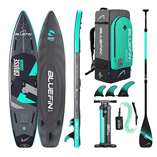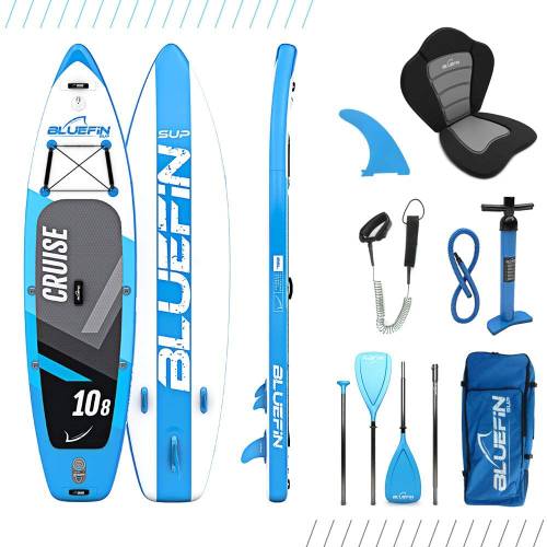 - Kürzere Bluefin-SUPs (10′ bis 10’8″) sind wendiger und ideal für Einsteiger oder leichtere Personen.