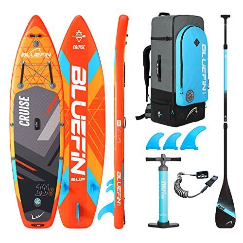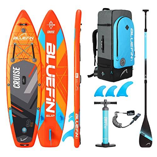 - Längere Bluefin-SUPs (ab 11′ aufwärts) bieten mehr Stabilität, bessere Gleiteigenschaften und sind auch für Touren oder zwei Personen geeignet.