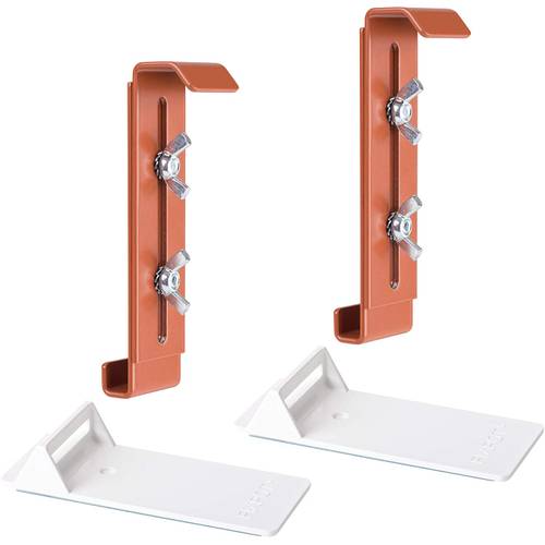 Hier sehen wir einige Basic-Terrakotta-Blumenkastenhalter aus lackiertem Stahl und daneben eine weiße Produktvariante.