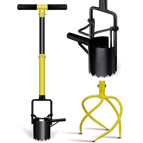 Nachdem der Blumenzwiebelpflanzer in den Boden gerammt wurde, wird er kreisrund gedreht. Bei den Produkten, die eine Art Trichter als Spitze haben, kann der Blumenzwiebelpflanzer nun wieder nach oben geführt werden. Das aus dem Boden entnommene Erdstück sollte sich nun im Trichter befinden.