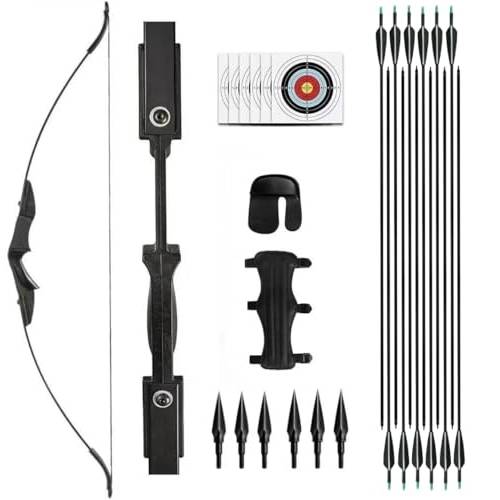 Das Reawow Pfeil- und Bogen-Set für Erwachsene ist eine ideale Wahl für Bogensport-Einsteiger. Der hochwertige Fiberglasbogen bietet eine gute Stabilität und hohe Festigkeit, während der harte und verschleißfeste Bogengriff ein angenehmes Handling gewährleistet. Mit einem Zuggewicht von 30 Pfund (ca. 14 kg) ist er leicht zu handhaben und bietet dennoch ausreichend Kraft für effektives Bogenschießen. Das Set beinhaltet neben dem Recurvebogen auch sechs gemischte Carbonpfeile sowie Finger- und Armschützer für zusätzliche Sicherheit. Das klassische Design des Bogens, gepaart mit dem Zubehör, sorgt für ein ansprechendes Bogenschießerlebnis. Die Möglichkeit, den Bogen bei Nichtgebrauch zu zerlegen und zu lagern, verlängert seine Lebensdauer. Eine mögliche Verbesserung könnte eine detailliertere Anleitung für den Zusammenbau und die Pflege des Bogens sein. Insgesamt bietet dieses Set eine solide Grundlage für Anfänger, um ihre Fähigkeiten im Bogenschießen zu entwickeln und Spaß zu haben.