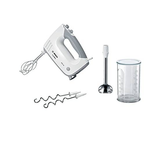 Es werden verschiedene Bosch-Handmixer-Sets angeboten. Normalerweise sind neben dem eigentlichen Gerät immer ein Paar Rührbesen und ein Paar Knethaken dabei. Weiteres mitgeliefertes Bosch-Handmixer-Zubehör können unter anderem ein Mixfuß und ein Universalzerkleinerer sein. Bei einem Bosch-Handmixer mit Pürierstab ist zudem oft noch ein Mixbecher dabei.