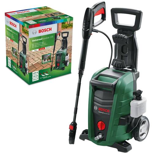Auf diesem Bild sehen wir den Bosch-Hochdruckreiniger „UniversalAquatak“, der mit bis zu 135 bar und 410 l/h arbeitet.