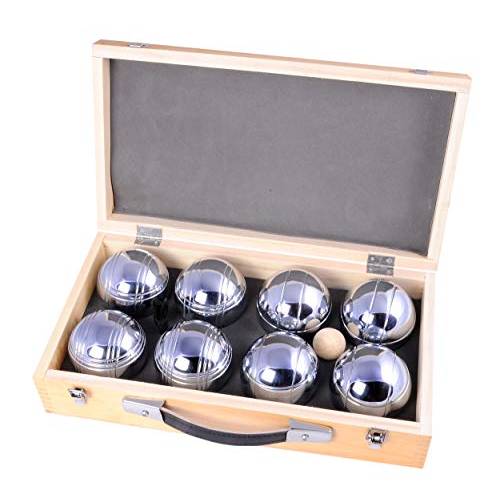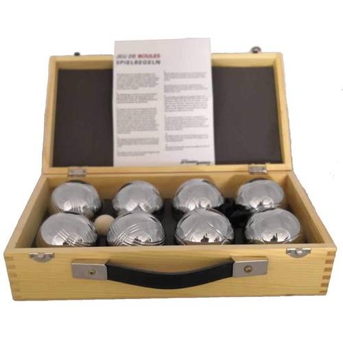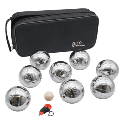 Ob Freizeit-Bouler oder Profi – wenn Sie ein Boule-Spiel kaufen, dann sollten Sie auf das Material der Kugeln fürs Boule-Spiel achten. Auch Spielern der Kategorie „Anfänger“ wird empfohlen, hochwertige Kugeln für Boule zu kaufen, damit man lange etwas von dem Pétanque-Spiel hat. Verschiedene Boule-Tests zeigen, dass Boule-Kugeln meistens aus voll verchromten Stahl bestehen. Sie wiegen zwischen 650 und 800 g. Vor allem im Wettkampf werden häufig schwere Kugeln genutzt. Dabei haben die Kugeln einen Durchmesser zwischen 70,5 und 80,0 mm. Grundsätzlich sollten die Stahlkugeln gut in der Hand liegen. Welche Kugelgröße für Sie am besten geeignet ist, kann pauschal nicht gesagt werden. Grundsätzlich sollte man bei einer kleinen Hand zu einer kleinen und leichten Kugel tendieren. Es gibt aber auch Spieler, die trotz einer kleinen Hand das Spielen mit schweren Kugeln bevorzugen. Deswegen hilft nur eins: ausprobieren!