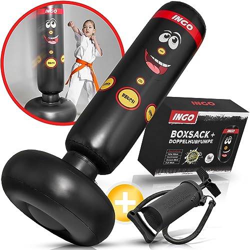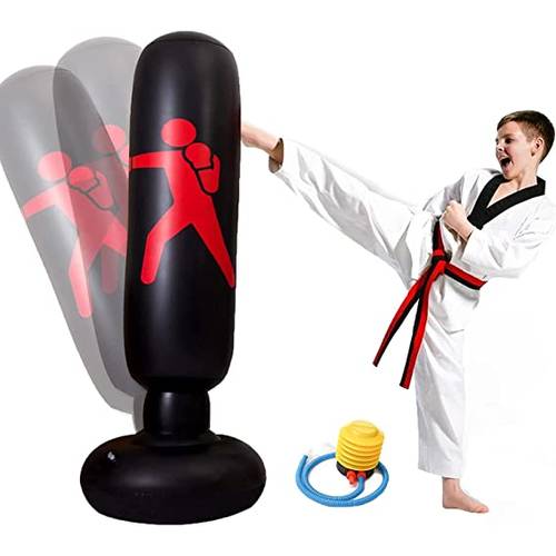 Ein stehender Kinder-Boxsack kann außerhalb der Trainingszeiten weggeräumt werden. Er beansprucht damit keinen Platz im Kinderzimmer, und Kinder sind auch nicht versucht, ohne Anleitung unter Umständen falsch zu trainieren. Die Modelle mit einem mit Sand und/oder Wasser gefüllten Standfuß und aufblasbarem Schlagteil lassen sich sogar sehr klein zusammenlegen. Wenn Sie auf der Suche nach einem solchen Boxsack für Kinder sind, dann sollten Sie auf die Bezeichnung „stehender und aufblasbarer Boxsack“ achten.