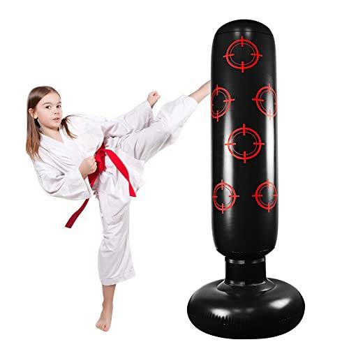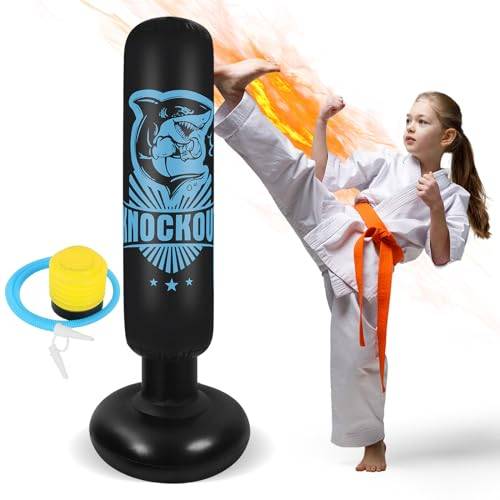 Aufblasbare Modelle gibt als freistehende Boxsäcke für Kinder. Sie sind – wie in in unserer Kaufberatung auf Vergleich.org – als stehende Varianten verfügbar. Beachten Sie bei solchen aufblasbaren Modellen die Gewichts- und Größenangaben genau, da der Übergang zum Spielzeug fließend ist.