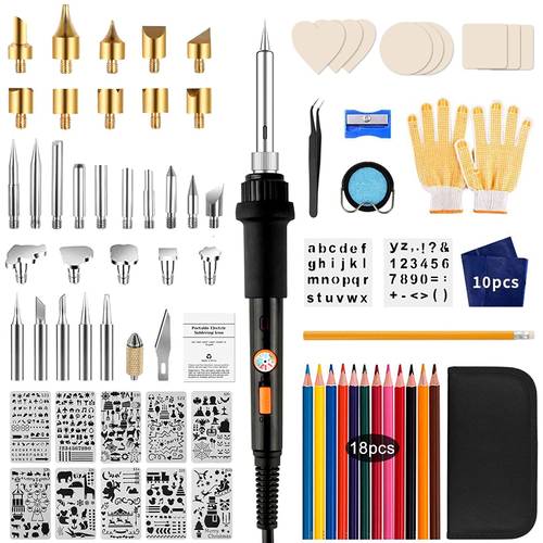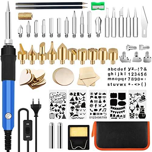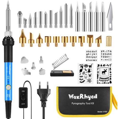 Wenn Sie hauptsächlich Leder oder weiches Holz bearbeiten möchten, kann der Kauf eines Brennkolbens für Holz ein guter Ausgangspunkt sein. Es handelt sich im Allgemeinen um preiswerte Werkzeuge mit viel praktischem Zubehör, wie mehrere Löt- und Brennspitzen, einem Brennstempel, einem Kolbenständer, einem Reinigungsschwamm sowie unterschiedliche Schablonen. Für Einsteiger in die Brandmalerei ist solch eine Garnitur ideal geeignet.