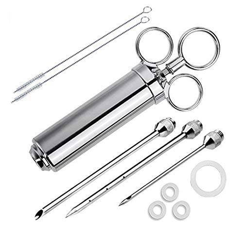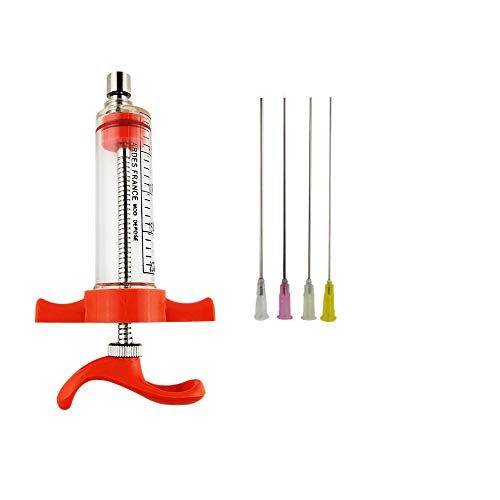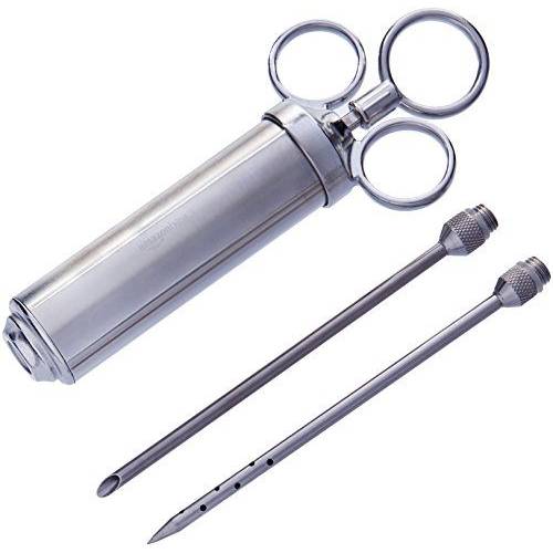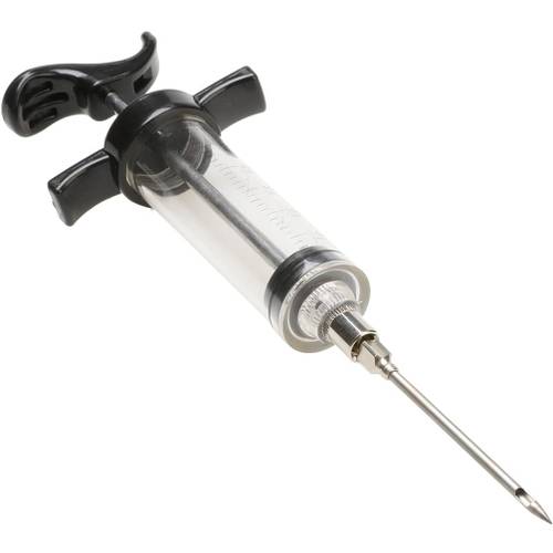 Diese Variante, wie zum Beispiel von Rösle oder WMF, ähnelt einer chirurgischen Spritze. Sie besteht aus einem Röhrenkörper und einer Nadel. Mit einem Griff wird die Marinade in das Fleisch hineingedrückt. Zum genauen Dosieren verfügt der Flüssigkeitsbehälter häufig auch über eine genaue Messskala.