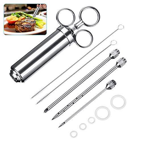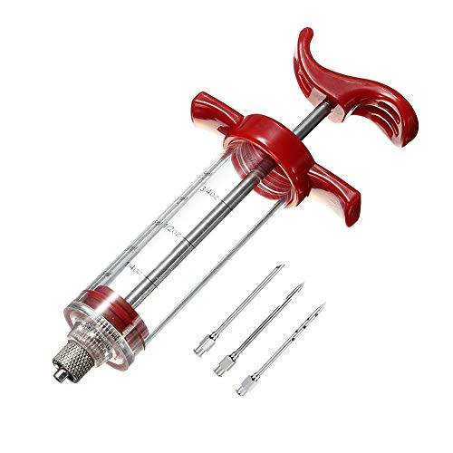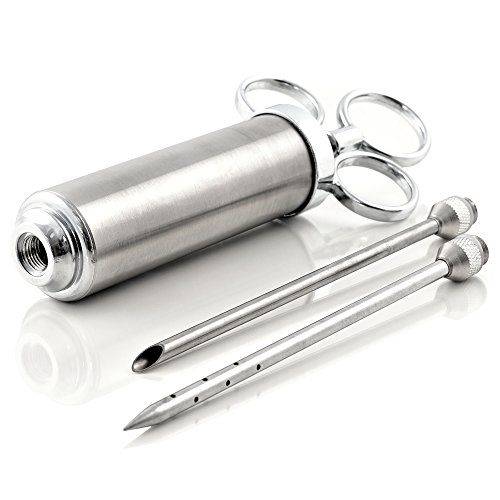 Tipp: Wenn Sie Ihr Fleisch sowohl mit flüssigen als auch dickflüssigeren Marinaden würzen möchten, sollten Sie sich für eine Bratenspritze mit mehreren austauschbaren Nadeln entscheiden.