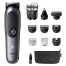 Der Barttrimmer Multi-Grooming-Kit-7 MGK7331 von Braun ist ein 10-in-1 Trimmer der dank der acht Aufsätze alle haarigen Bereiche am Körper trimmen kann. Die Akkulaufzeit beträgt 100 Minuten, der Akku kann innerhalb einer Stunde geladen werden. Die Längen können zwischen 0,5 bis 21 mm eingestellt werden. Im Gegensatz zu vielen anderen Geräten kann der MGK7331 auch Ohren- und Nasenhaare sowie die Körperbehaarung trimmen.
