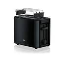 Das kompakte, mattschwarze Design des Braun-Toasters PurEase, den wir hier in der Mitte sehen, kombiniert klassische Formensprache mit moderner Funktion und ist „Designed in Germany“.