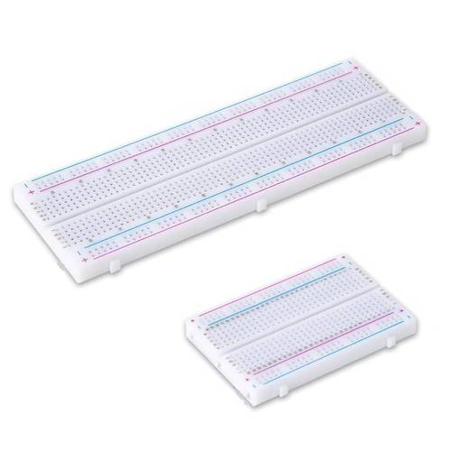 In der Tabelle unseres Breadboard-Vergleichs finden Sie Steckplatinen, wie die Breadboards auch genannt werden, mit einer unterschiedlichen Anzahl an Kontakten. Zudem bieten viele Hersteller Steckplatinen-Sets an, die Breadboard mit einer unterschiedlichen Anzahl an Kontakten enthalten. In die Kontakte der Breadboards werden die Kabel für die elektronische Schaltung gesteckt. Um den Überblick über den Schaltplan des Breadboards zu behalten, sind die Schaltplatinen zudem beschriftet.