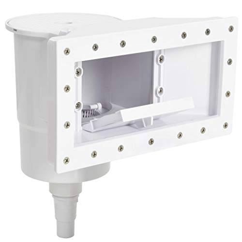Ein Breitmaulskimmer für den Pool besteht aus mehreren Bauteilen als Set. Das zentrale Element ist das Skimmergehäuse, ein stabiler, rechteckiger Korpus aus wetterfestem Kunststoff, der in die Poolwand eingelassen wird. An der Vorderseite befindet sich die charakteristisch breite Ansaugöffnung.