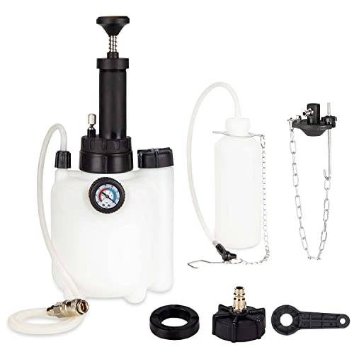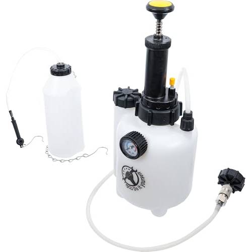 Wir empfehlen Ihnen, ein Produkt zu kaufen, das einen Auffangbehälter für die alte Bremsflüssigkeit beinhaltet, z. B. von Rotools oder Mr Cartool. Außerdem sollten Sie darauf achten, dass die Handpumpe des manuellen Bremsenentlüfters über einen robusten Stahlgriff verfügt, der Ihnen das Pumpen von Hand erleichtert und die Haltbarkeit des Geräts erhöht.