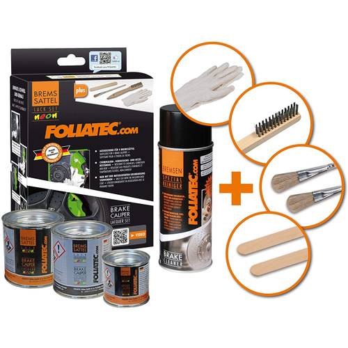 Ob Foliatec-Bremssattellack oder eine andere Marke, ein Set ist in jedem Fall empfehlenswert. Lacke in Sprühdosen werden normalerweise einzeln angeboten, doch das bedeutet nicht, dass zusätzliche Produkte in dem Fall unwichtig sind. Es wird beispielsweise empfohlen, den Bremssattel vor dem Lackieren gründlich zu reinigen. Das gelingt am besten mit einem Bremsenreiniger, der in Sets oft enthalten ist. Schutzhandschuhe und ein Pinsel können ebenfalls hilfreich sein – auch bei einem Lack, der aufgesprüht wird.