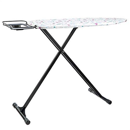 Je größer die Bügelfläche ist, desto einfacher können Sie Ihre Kleidung bügeln. Denn Sie können beispielsweise Ihre Hosen in voller Länge ausbreiten. Achten Sie also darauf, dass die Fläche mindestens 120 x 30 cm beträgt. Mit einer Bügelfläche von 130 x 48 cm zählt das Modell zu den größeren Bügeltischen in unserem Vergleich. Ist die Fläche kleiner als 130 x 48 cm oder sogar als 120 x 30 cm, müssen Sie gegebenenfalls die Kleidung ständig neu zurecht legen, um überall die Falten glätten zu können. Dadurch verlängert sich natürlich auch der Bügelvorgang. Modelle mit einer Bügelfläche von 130 x 48 cm erhalten Sie unter anderem von Wenko oder XXL Eurogold.