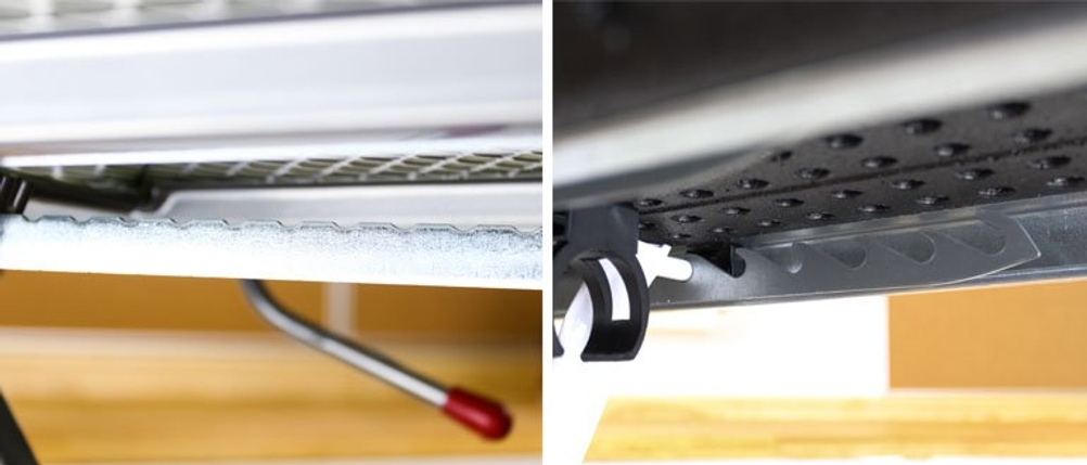Allerdings fehlen Markierungen für feste Höhenstufen. Dadurch musste die ideale Position jedes Mal durch Probieren gefunden werden, was besonders dann umständlich ist, wenn das Brett von mehreren Personen genutzt wird. Allerdings verfügt es über eine Kindersicherung.