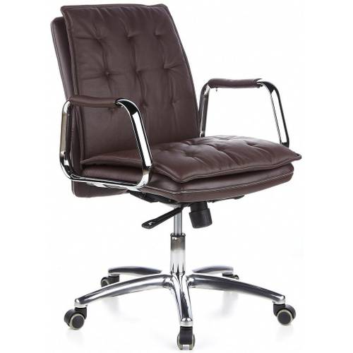 Auf diesem Bild sehen wir einen Rahaus-Echtleder-Bürostuhl, der mit braunem Rindleders im Antiklook bezogen ist.