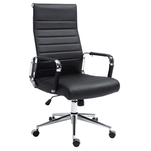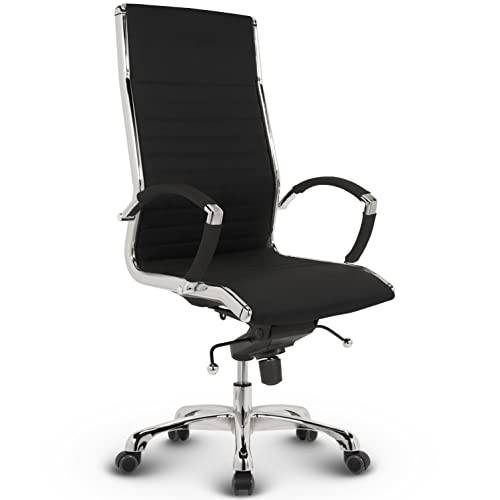 Die hohe Rückenlehne des Rahaus-Echtleder-Bürostuhls kennzeichnet die Stühle, die wir häufig unter dem Begriff „Chefsessel“ finden.