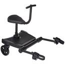 Eines der komfortabelsten Buggy-Boards ist der Buggy-Board mit Sattel. Erhältlich ist dieser meistens nur im Set mit dem jeweiligen Buggy-Board. Dank des zusätzlichen Sattels bietet das Buggy-Board beim Sitzen zusätzlichen Halt und Komfort. Bei Nichtgebrauch kann der Sitz des Kiddy-Boards einfach abmontiert werden. Die maximale Belastung bei diesen Buggy-Boards liegt gewöhnlich bei maximal 20 kg. Diese Buggy-Boards eignen sich normalerweise für Kinder von 3 bis maximal 5 Jahren. Es gibt allerdings Ausnahmen: Diese sind für Kinder von 2 bis 6 Jahren und mit 22 kg kompatibel.