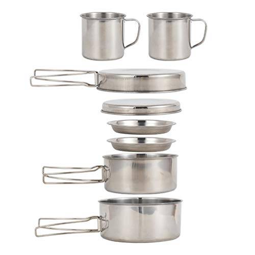 Das Bestargot-Camping-Kochgeschirr aus Edelstahl, das wir heir sehen, ist ideal für den Einsatz beim Wandern, Zelten oder Trekking geeignet.