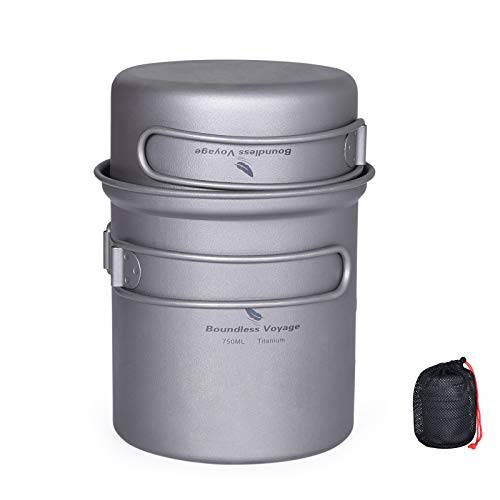 Platz 4 | Boundless Voyage Camping Kochgeschirr | ca. 41 € | Töpfe in verschiedenen Größen mit Zusatzpfanne | 0,5 / 0,55 / 0.65 Liter | ||